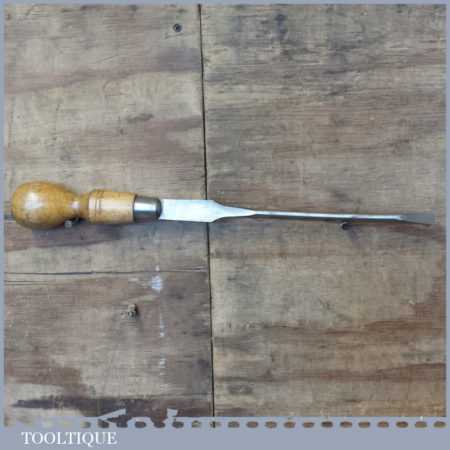 Vintage cabinet maker’s 18” turnscrew screwdriver with beechwood handle and approx a 1/2” tip in good used condition
