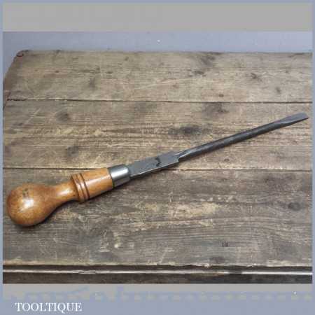 Vintage cabinet maker’s 18” turnscrew screwdrivers with approx a 1/2” tip and is in good used condition, marked JBH 1944. These really are a handy tool and we use them all the time in the workshop for a whole host of reasons.