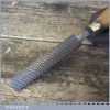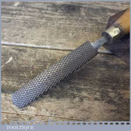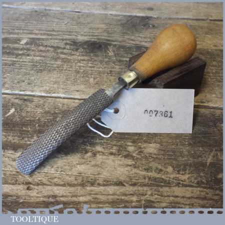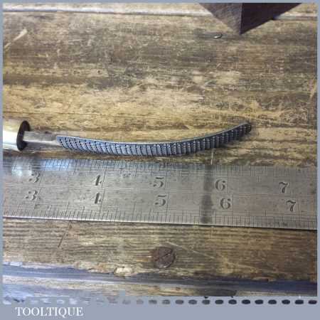 Vintage Cobblers Leatherworking Curved Rand Rhan File tool with wooden handle in good used condition. Almost certainly blacksmiths made and hard to find.