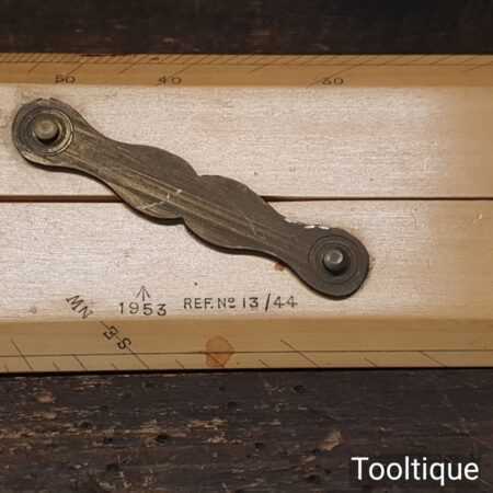 Vintage Capt Fields Improved boxwood and brass 12” parallel rule with broad arrow and dated 1953 in good used condition.