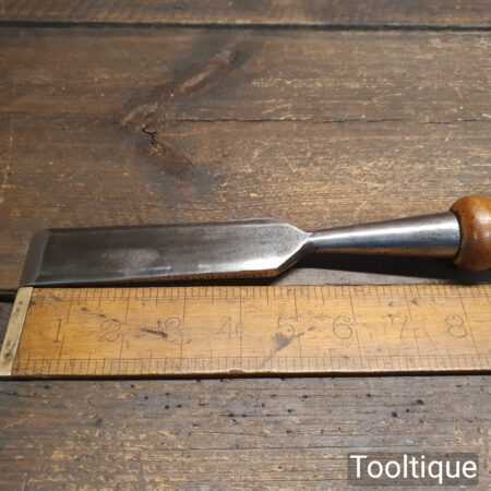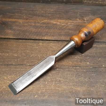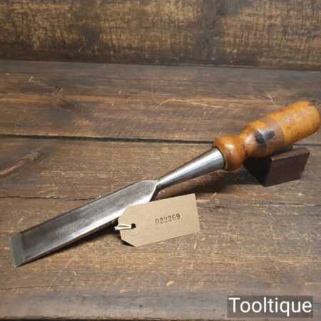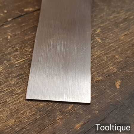 The chisel has been checked to ensure the tang is seated properly and the handle is solid and fit for use. All refurbished chisels are water cooled during the sharpening & flatting process to ensure the tempering is not affected