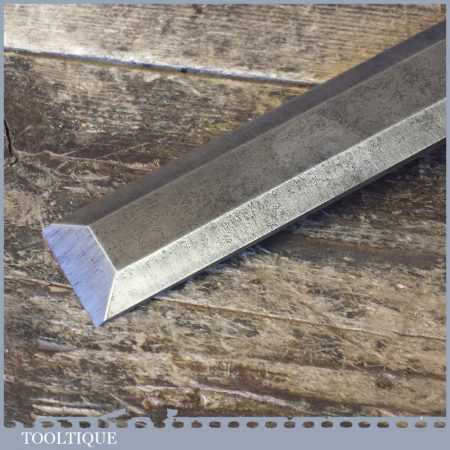 The chisel has been checked to ensure the tang is seated properly and the handle is solid and fit for use. All refurbished chisels are water cooled during the sharpening process to ensure the tempering is not affected. These old cast steel chisels are hand forged and far superior in quality because of the high carbon steel that was used which produces a keener edge, this was also generally used throughout the full length.