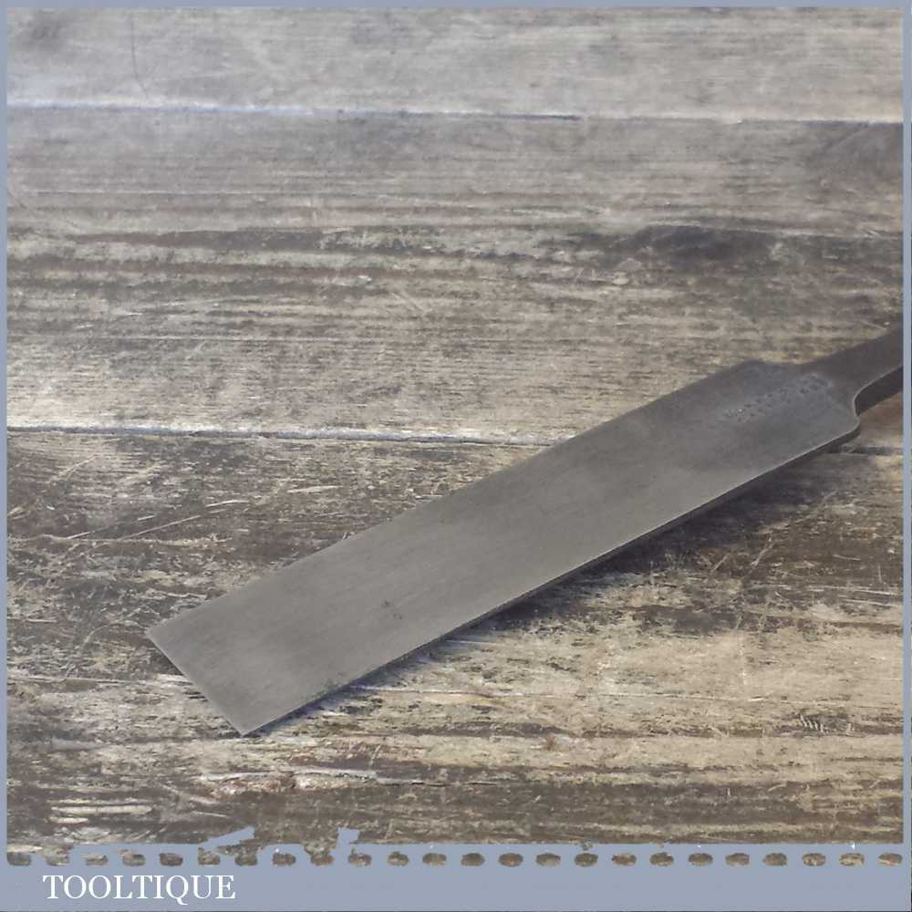 The chisels are checked to ensure the tang is seated properly and the handle is solid and fit for use. All chisels are water cooled during the sharpening process to ensure the tempering is not affected. These old cast steel chisels are hand forged and far superior in quality with high carbon steel for a keener edge which was used throughout the length. .