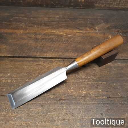 The chisel has been checked to ensure the tang is seated properly and the handle is solid and fit for use. All refurbished chisels are water cooled during the sharpening process to ensure the tempering is not affected.