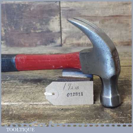 Vintage carpenters 1 ½ lb cast steel claw hammer with cushion grip handle, in good used condition.