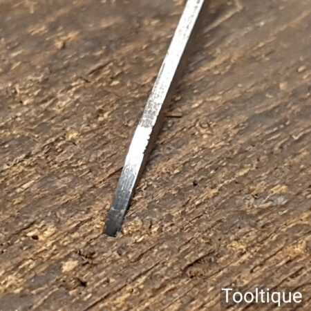 The chisel has been checked to ensure the tang is seated properly and the handle is solid and fit for use. All refurbished chisels are water cooled during the sharpening & Flattening process to ensure the tempering is not affected.