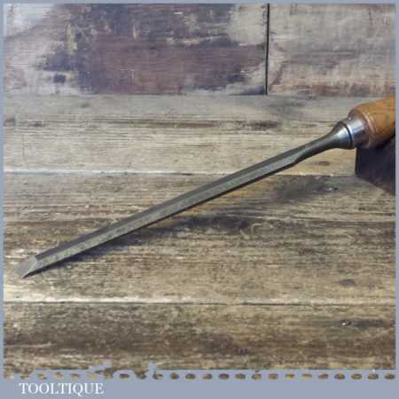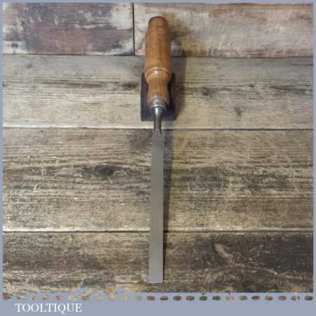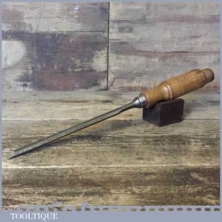 Vintage carpenter’s 1/2” bevel edge paring chisel with ash handle in good used condition, fully refurbished sharpened and honed ready for use.