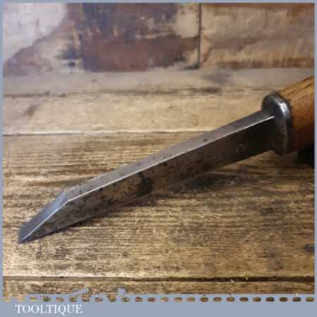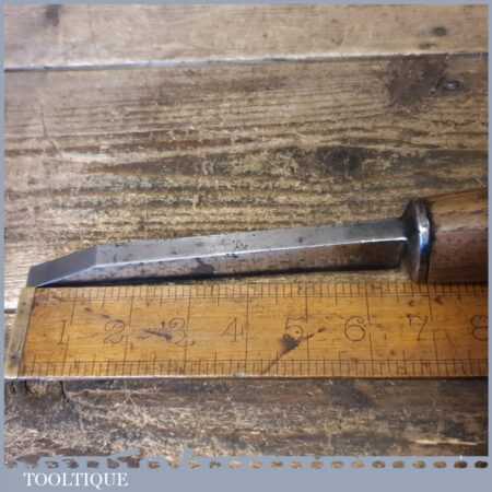 Vintage carpenter’s 1/2” cast steel mortice chisel with ash handle in good used condition, fully refurbished sharpened and honed ready for use. Note Crescent mark which is most likely part of the Mathieson Stamp.
