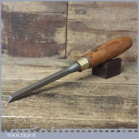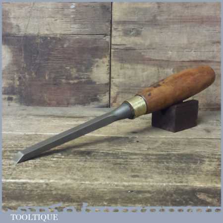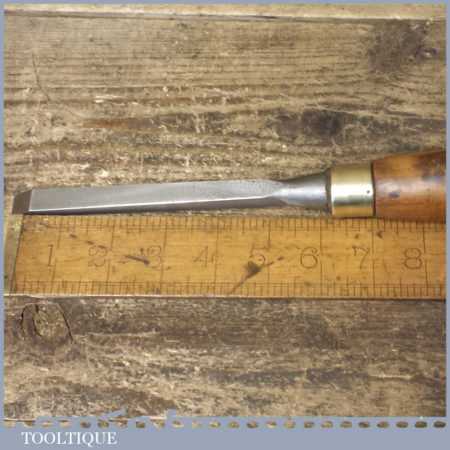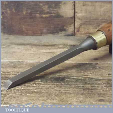 The chisel has been checked to ensure the tang is seated properly and the handle is solid and fit for use. All refurbished chisels are water cooled during the sharpening process to ensure the tempering is not affected. These old cast steel chisels are hand forged and far superior in quality because of the high carbon steel that was used which produces a keener edge, this was also generally used throughout the full length.