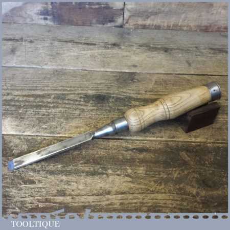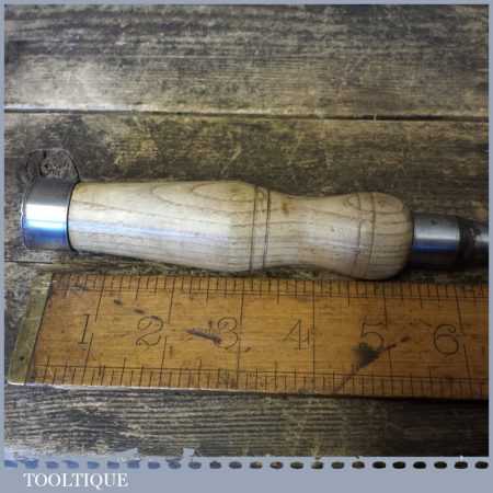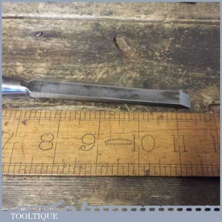 The chisel has been checked to ensure the tang is seated properly and the handle is solid and fit for use. All refurbished chisels are water cooled during the sharpening process to ensure the tempering is not affected. These old cast steel chisels are hand forged and far superior in quality because of the high carbon steel that was used which produces a keener edge, this was also generally used throughout the full length.