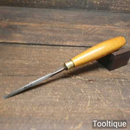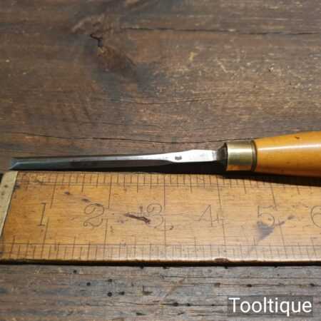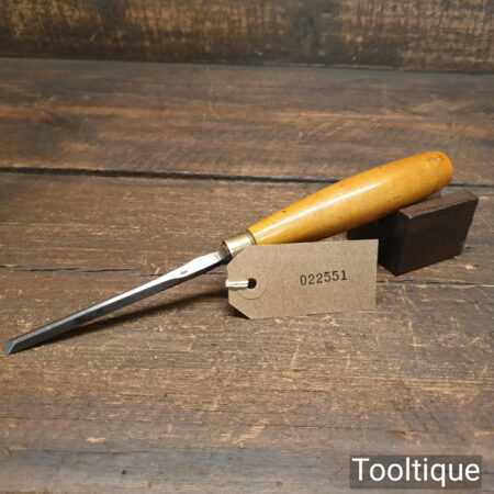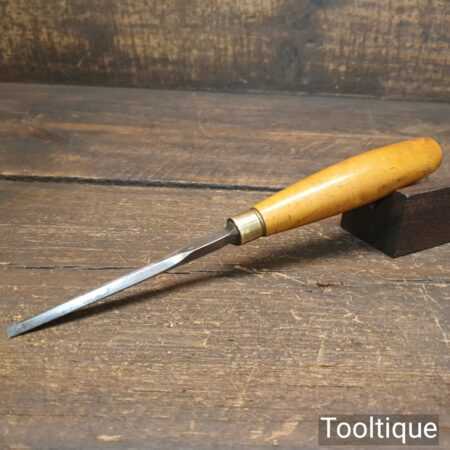 Vintage carpenter’s 1/4” bevel edge chisel with boxwood handle in good used condition, fully refurbished sharpened and honed ready for use.