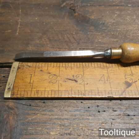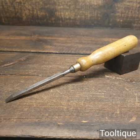 Vintage carpenter’s 1/4” cast steel sash mortice chisel with beechwood handle in good used condition, fully refurbished sharpened and honed ready for use.