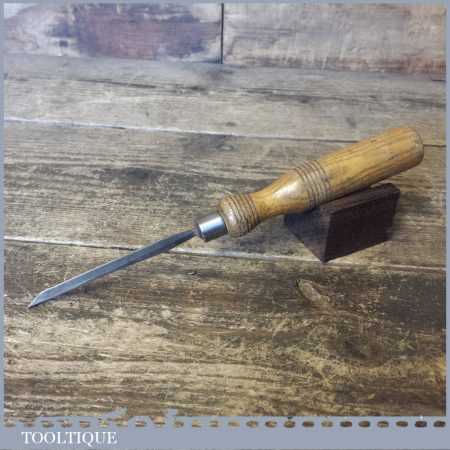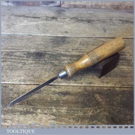 Vintage carpenter’s 1/8” bevel edge chisel with ash handle, in good used condition, fully refurbished, sharpened and honed ready for use.