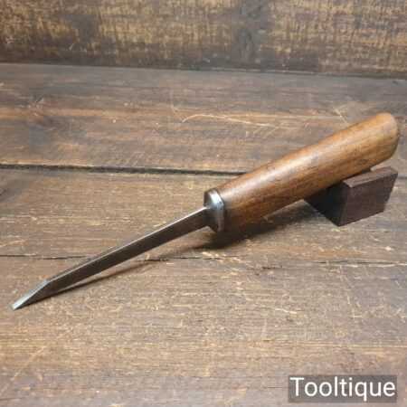 Vintage carpenter’s 1/8” cast steel mortice chisel with beechwood handle in good used condition, fully refurbished sharpened and honed ready for use.