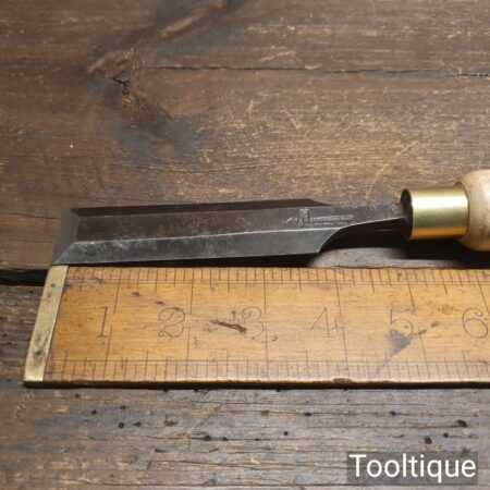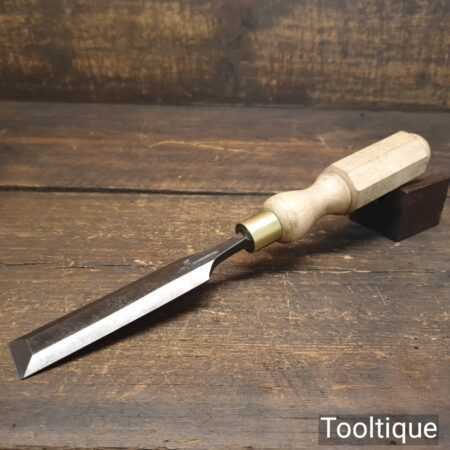 The chisel has been checked to ensure the tang is seated properly and the handle is solid and fit for use. All refurbished chisels are water cooled during the sharpening & flattening process to ensure the tempering is not affected.