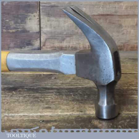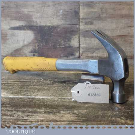 Vintage carpenters 1 lb 9 oz cast steel claw hammer with plastic handle, in good used condition.
