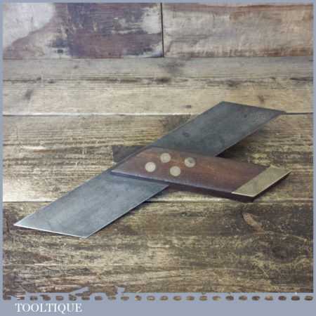 Vintage carpenter’s 10” mahogany and brass mitre hook square in good used condition.