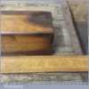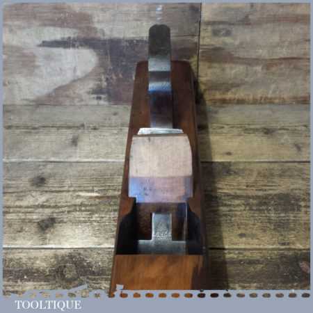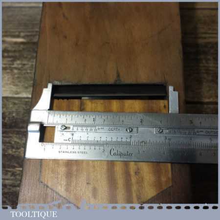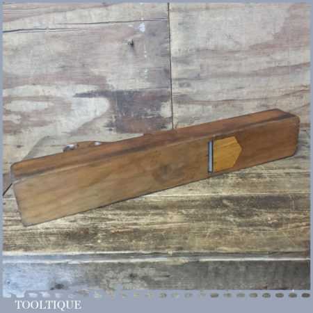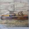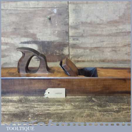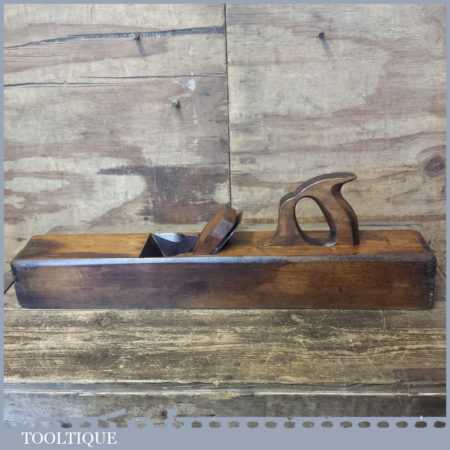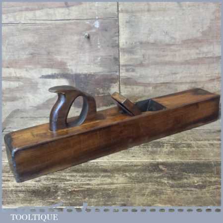 Vintage carpenter’s 22” beechwood trying plane in good used condition. Lapped flat and sharpened ready for use. Note: Insert to the sole added by previous owner to close the throat to improve performance.