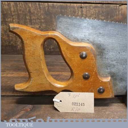 Vintage Carpenters Spear & Jackson 22” rip saw with 7 tpi, fully refurbished and sharpened ready for use. Sharpened well and is a good workhorse saw.