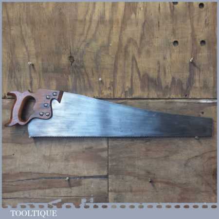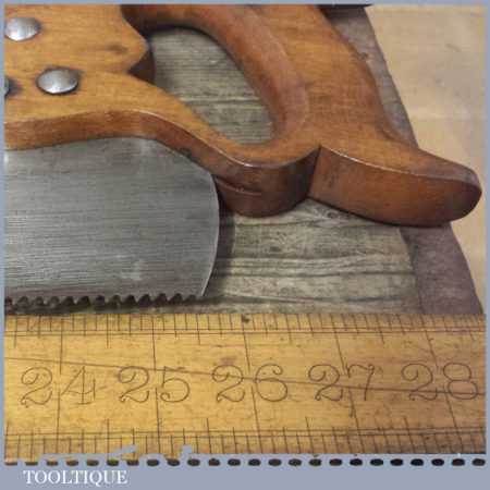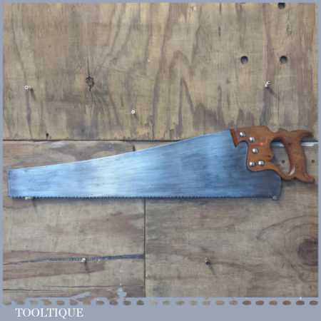 Vintage Carpenters 26” rip saw with 6 tpi, fully refurbished and sharpened ready for use. Having sharpened it this has a quality saw plate but the name etched on the plate is mostly illegible.