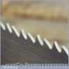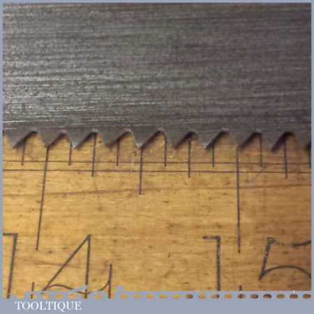 The saw has been thoroughly cleaned, jointed, resharpened and set by hand so that all the hard work of getting an old vintage saw right has been undertaken. We do this so that the next sharpening is easier and no more than a quick freshen up would be required. Those who are familiar with sharpening will know this is no small job and requires skill, effort and time to achieve good results.