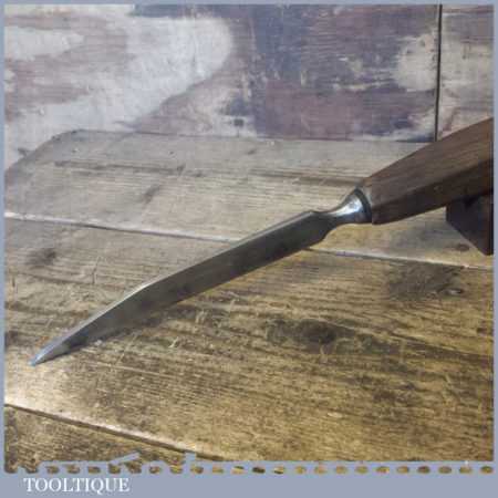 The chisel has been checked to ensure the tang is seated properly and the handle is solid and fit for use. All refurbished chisels are water cooled during the sharpening process to ensure the tempering is not affected. These old cast steel chisels are hand forged and far superior in quality because of the high carbon steel that was used which produces a keener edge, this was also generally used throughout the full length.