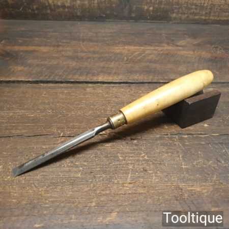 Vintage carpenter’s 3/8” bevel edge chisel with boxwood handle in good used condition, fully refurbished sharpened and honed ready for use. Note: Almost certainly by Marples who often used decal on handle.