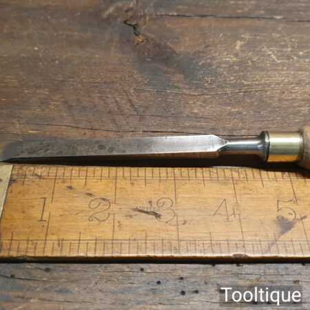 Vintage carpenter’s 3/8” firmer chisel with ash handle in good used condition, fully refurbished sharpened and honed ready for use.