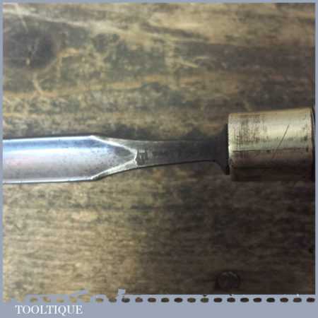 The chisel has been checked to ensure the tang is seated properly and the handle is solid and fit for use. All refurbished chisels are water cooled during the sharpening process to ensure the tempering is not affected. These old cast steel chisels are hand forged and far superior in quality because of the high carbon steel that was used which produces a keener edge, this was also generally used throughout the full length.
