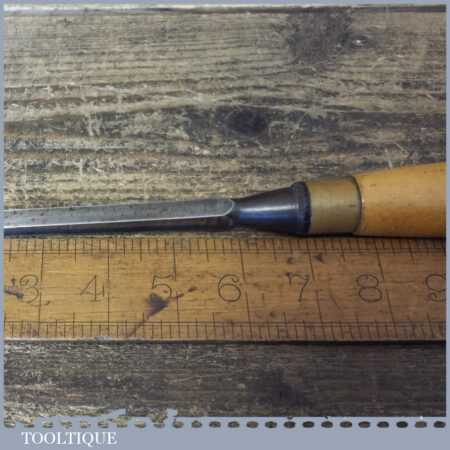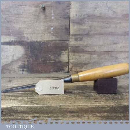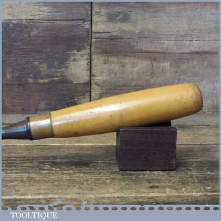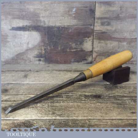 Vintage carpenter’s 5/16” cast steel sash mortice chisel with beechwood handle in good used condition, fully refurbished sharpened and honed ready for use. Note: Makers Mark has worn of the handle probably by Marples or Sorby.