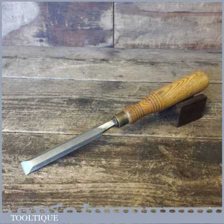 Vintage carpenter’s 5/8” bevel edge chisel with ash handle, in good used condition, fully refurbished, sharpened and honed ready for use.