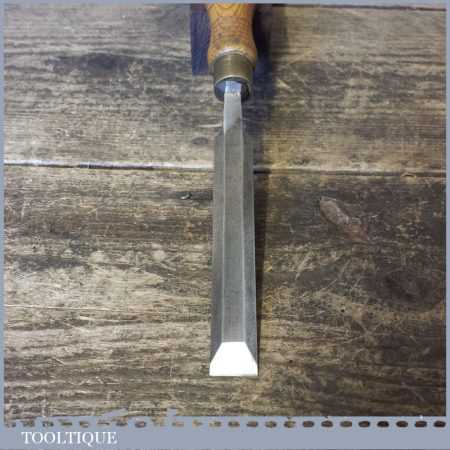 These chisels has been checked to ensure the tang is seated properly and the handle is solid and fit for use. All refurbished chisels are water cooled during the sharpening process to ensure the tempering is not affected. These old cast steel chisels are hand forged and far superior in quality because of the high carbon steel that was used which produces a keener edge, this was also generally used throughout the full length.