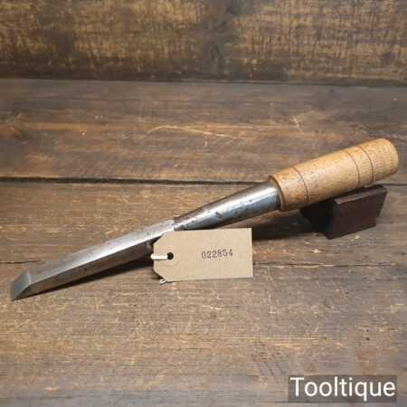 The chisel has been checked to ensure the tang is seated properly and the handle is solid and fit for use. All refurbished chisels are water cooled during the sharpening process to ensure the tempering is not affected.