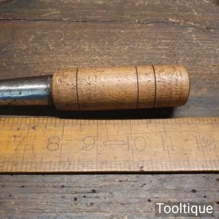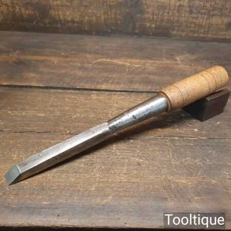 Vintage carpenter’s 5/8” cast steel socketed mortice chisel with beechwood handle in good used condition, fully refurbished sharpened and honed ready for use.