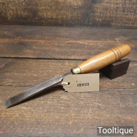 The chisel has been checked to ensure the tang is seated properly and the handle is solid and fit for use. All refurbished chisels are water cooled during the sharpening process to ensure the tempering is not affected.