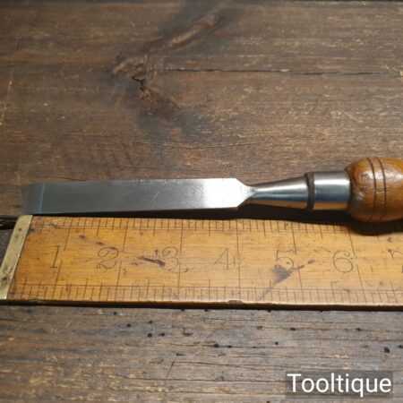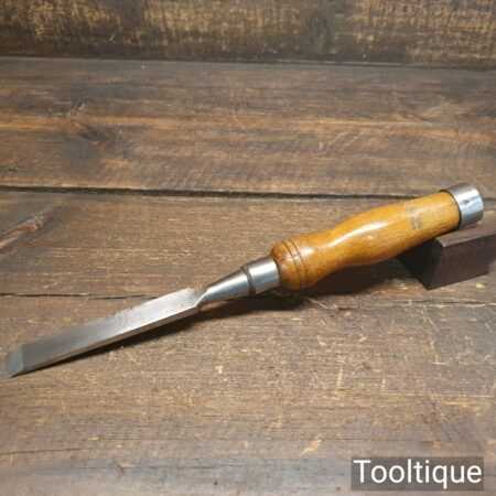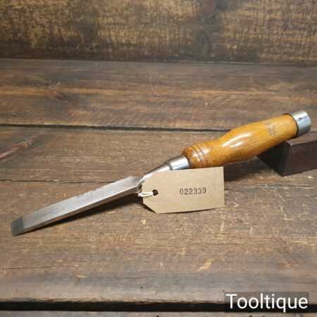 The chisel has been checked to ensure the tang is seated properly and the handle is solid and fit for use. All refurbished chisels are water cooled during the sharpening process to ensure the tempering is not affected.