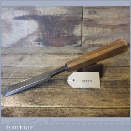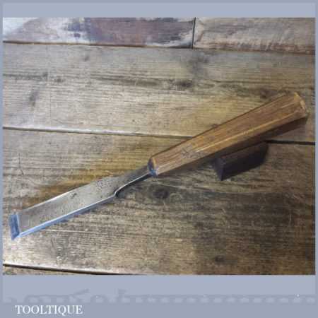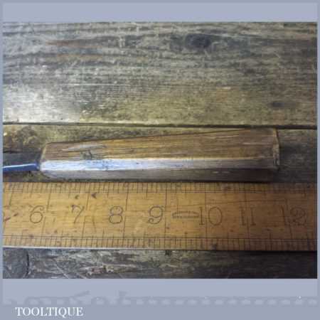 The chisel has been checked to ensure the tang is seated properly and the handle is solid and fit for use. All refurbished chisels are water cooled during the sharpening process to ensure the tempering is not affected. These old cast steel chisels are hand forged and far superior in quality because of the high carbon steel that was used which produces a keener edge, this was also generally used throughout the full length.