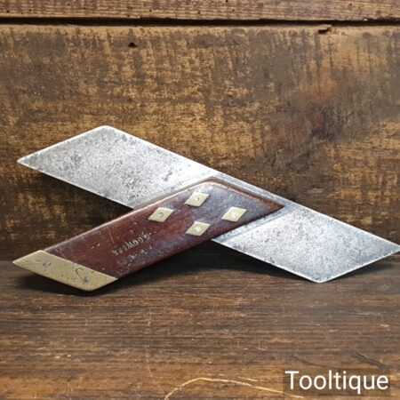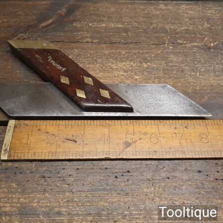 Vintage carpenter’s 8” rosewood and brass mitre hook square in good used condition.