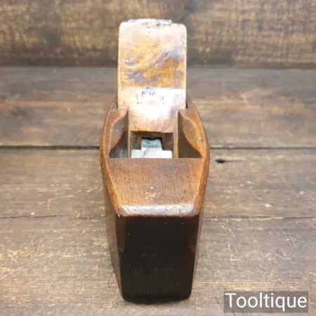 Vintage carpenter’s beechwood smoothing block plane with boxwood wedge in good used condition.