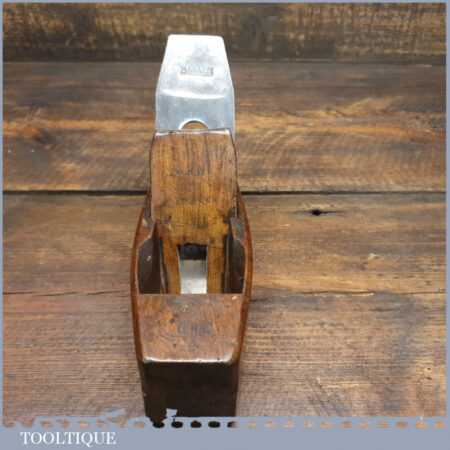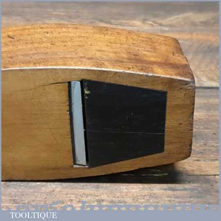 Vintage carpenter’s beechwood smoothing block plane in good used condition. The sole has a rosewood inset to close the throat. Note: This plane has been lapped flat and the iron and chip breaker have been refurbished ready for use.