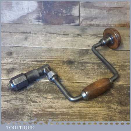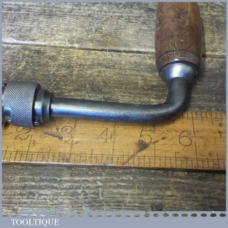 Vintage carpenter’s brace with beechwood handles and a 12” swing, refurbished ready for use.