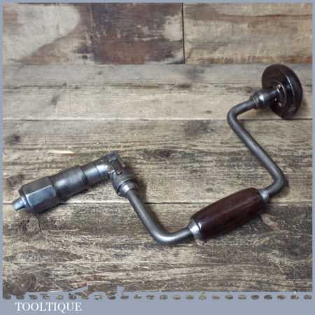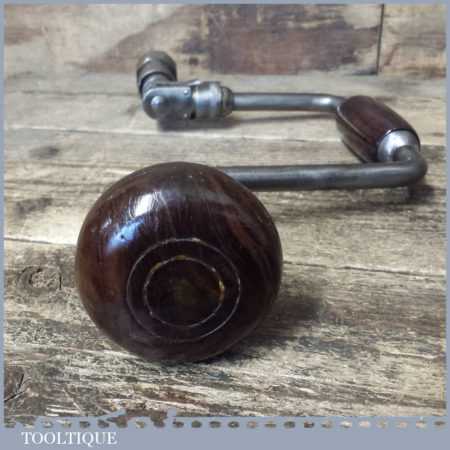 Vintage carpenter’s brace with rosewood handles and a 10” swing, refurbished ready for use.