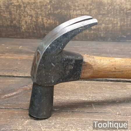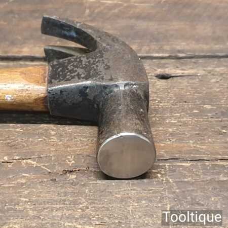 Vintage carpenter’s cast steel claw hammer with wooden handle in good used condition.