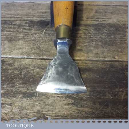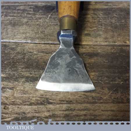 The chisel has been checked to ensure the tang is seated properly and the handle is solid and fit for use. All refurbished chisels are water cooled during the sharpening process to ensure the tempering is not affected. These old cast steel chisels are hand forged and far superior in quality because of the high carbon steel that was used which produces a keener edge, this was also generally used throughout the full length.