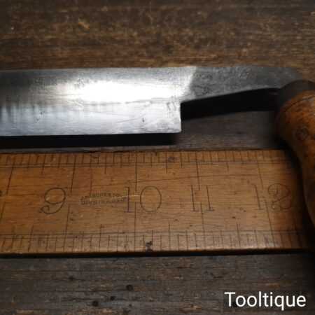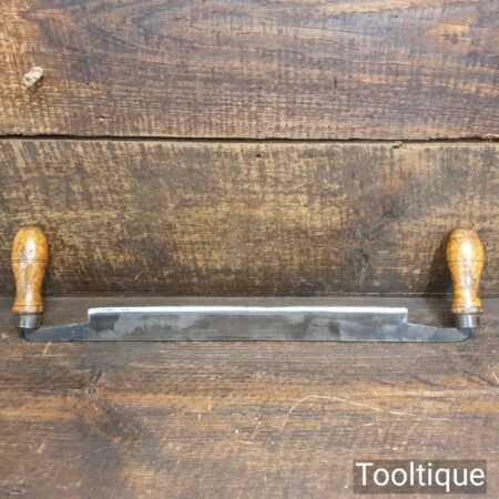 Vintage carpenter’s drawknife with a 10 ¾” cutting edge and beechwood handles, sharpened and honed ready for use and in good used condition.