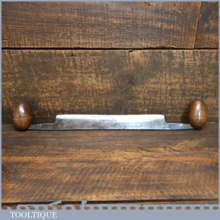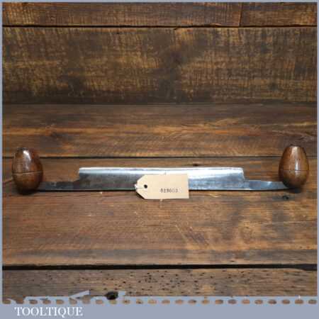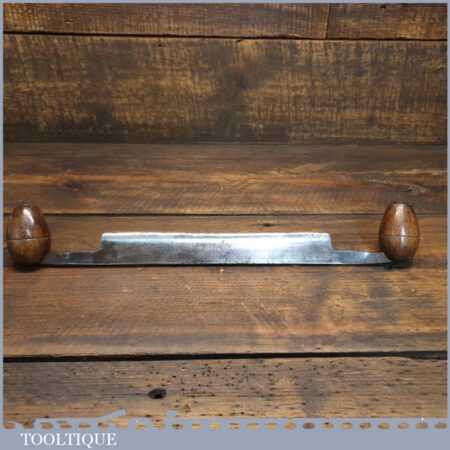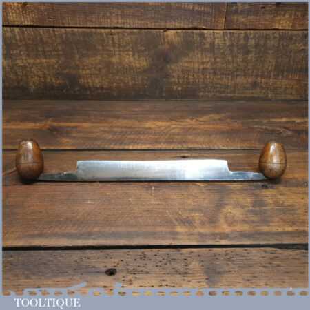 Vintage carpenter’s drawknife with a 9” cutting edge and egg shaped beechwood handles, sharpened and honed ready for use and in good used condition.