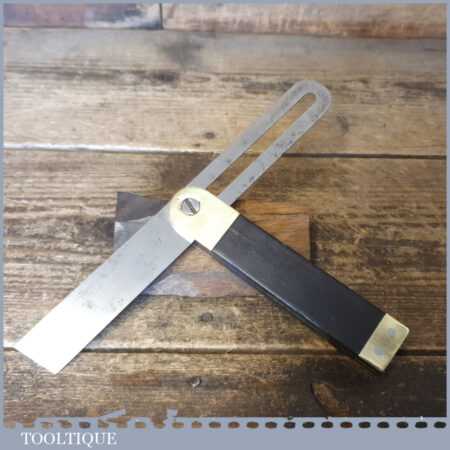 Vintage carpenters ebony and brass 9” sliding bevel in good used condition.
