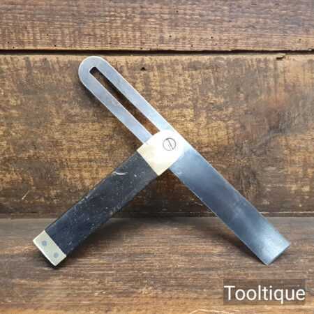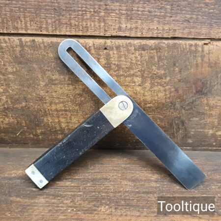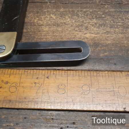 Vintage carpenters ebony and brass sliding bevel with 9” blade in good used condition.