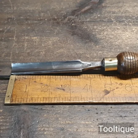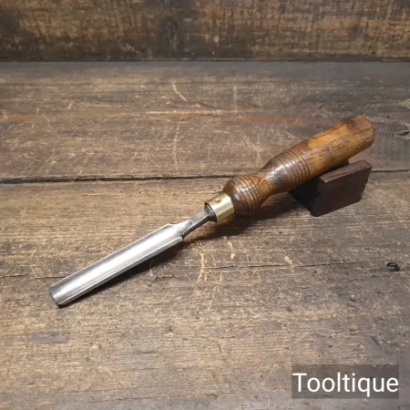 Vintage Carpenters Forged Steel 11/16 Wide Gouge Chisel with and Ashwood Handle, refurbished ready for use and in good used condition.