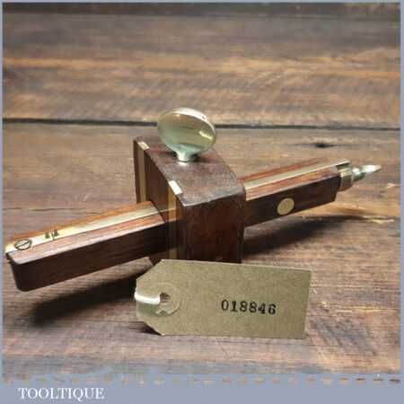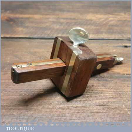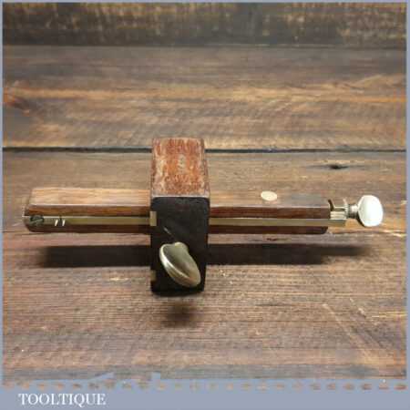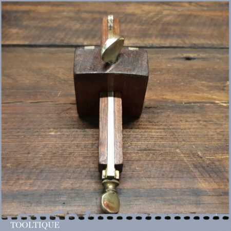 Vintage carpenter’s mahogany and brass mortise gauge with screw adjustment, smooth action and good pins, in good used condition
